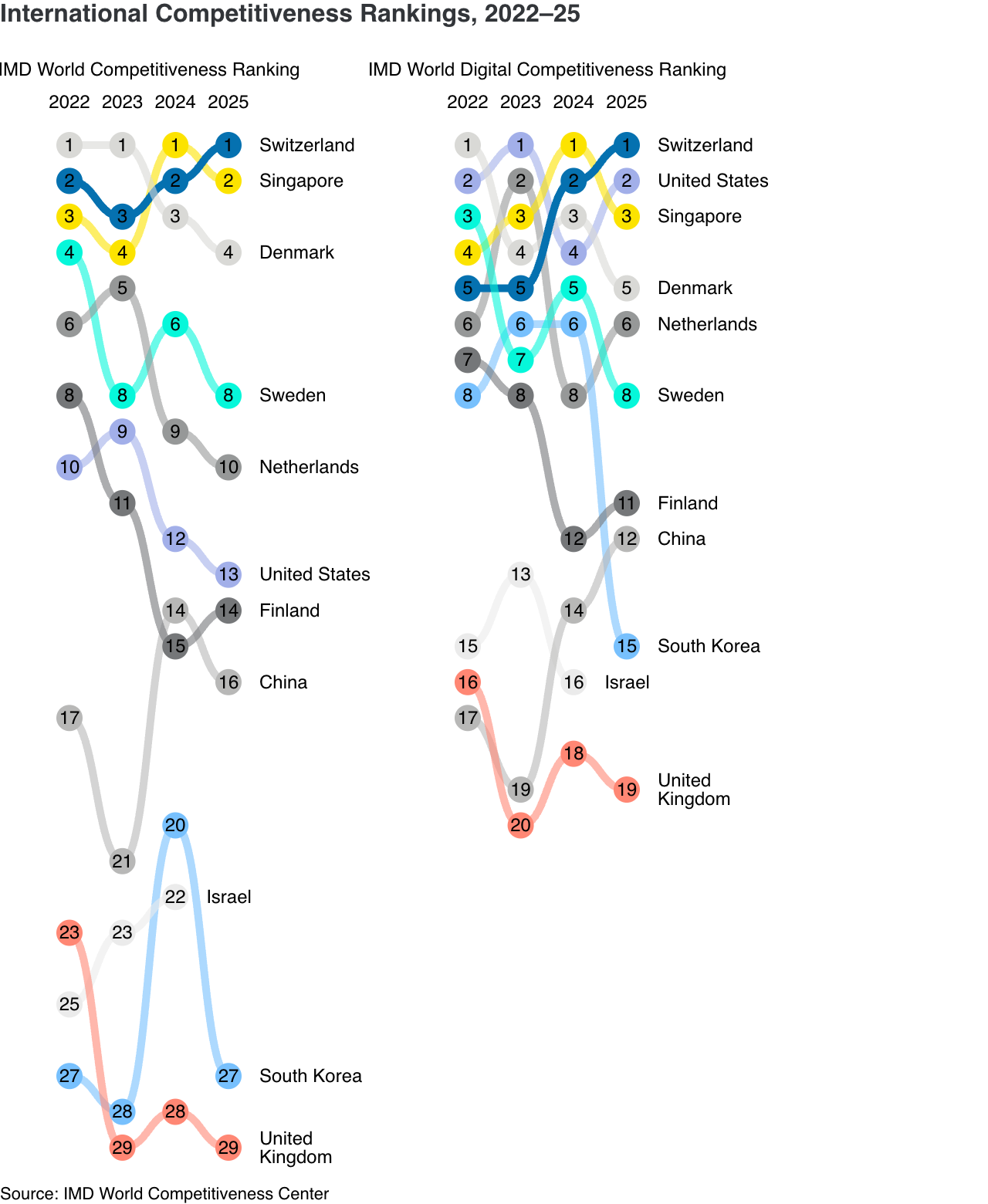The weaknesses are more varied, from limited government support to low foreign direct investment and trade impacts. One very notable difference: high-tech imports. The EIS treats them as a vulnerability, signalling dependence on critical supplies. The GII sees them positively, as a sign of economic complexity and ability to absorb foreign knowledge. Both views have their raison d'être. Which matters more depends on how open the global economy remains.