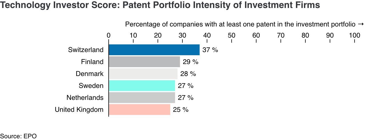 The European Patent Office (EPO) links its own patent data to dealroom.co's data on investors and their investments and creates a comparative analysis of the technology intensity of the investment portfolios in Europe and the US.